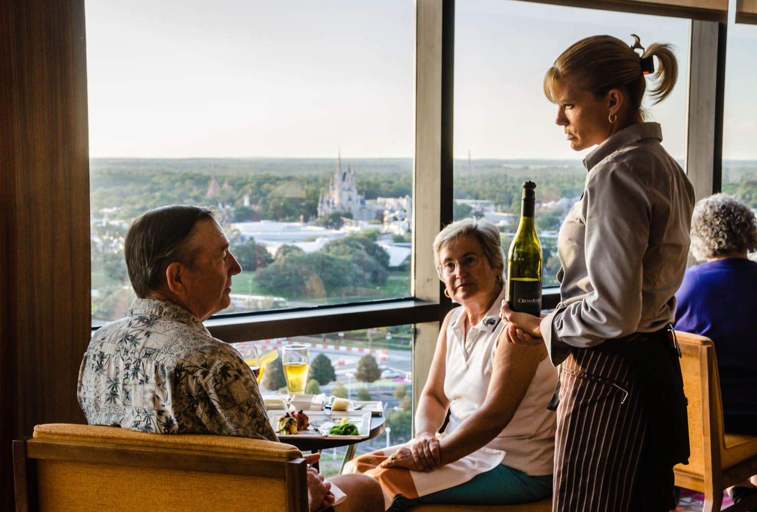 We were escorted to a private room, also with floor-to-ceiling window, looking out on the lush green space that Florida is known for. Few buildings dot that land, except for a terra cotta castle on the horizon that we were told will soon be the new Four Season Orlando. It was tempting to gaze out the window until dark, only a savory meal–perfectly complemented by new-to-me wines–and delightful conversation competed with the vista.