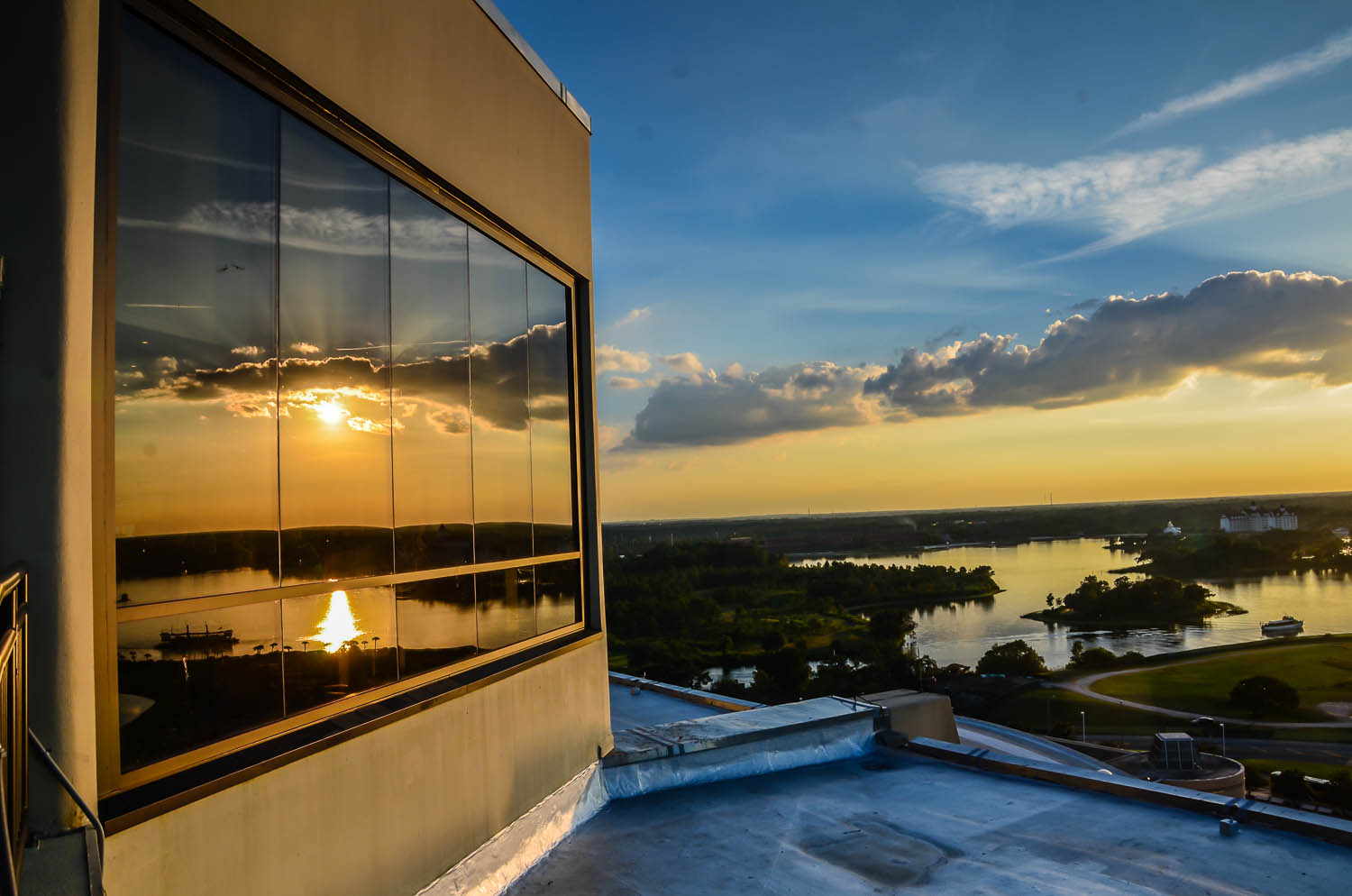 Entering the restaurant proper, I was struck by the view. Because it’s located on the top floor of the tallest building as far as the eye can see, California Grill patrons have an unobstructed view through floor-to-ceiling windows of the Magic Kingdom’s castle and Space Mountain, making this an exceptional spot to observe the fireworks at the Magic Kingdom. We were too early for the fireworks but instead saw another spectacle–a golden sunset that put man-made pyrotechnics to shame.