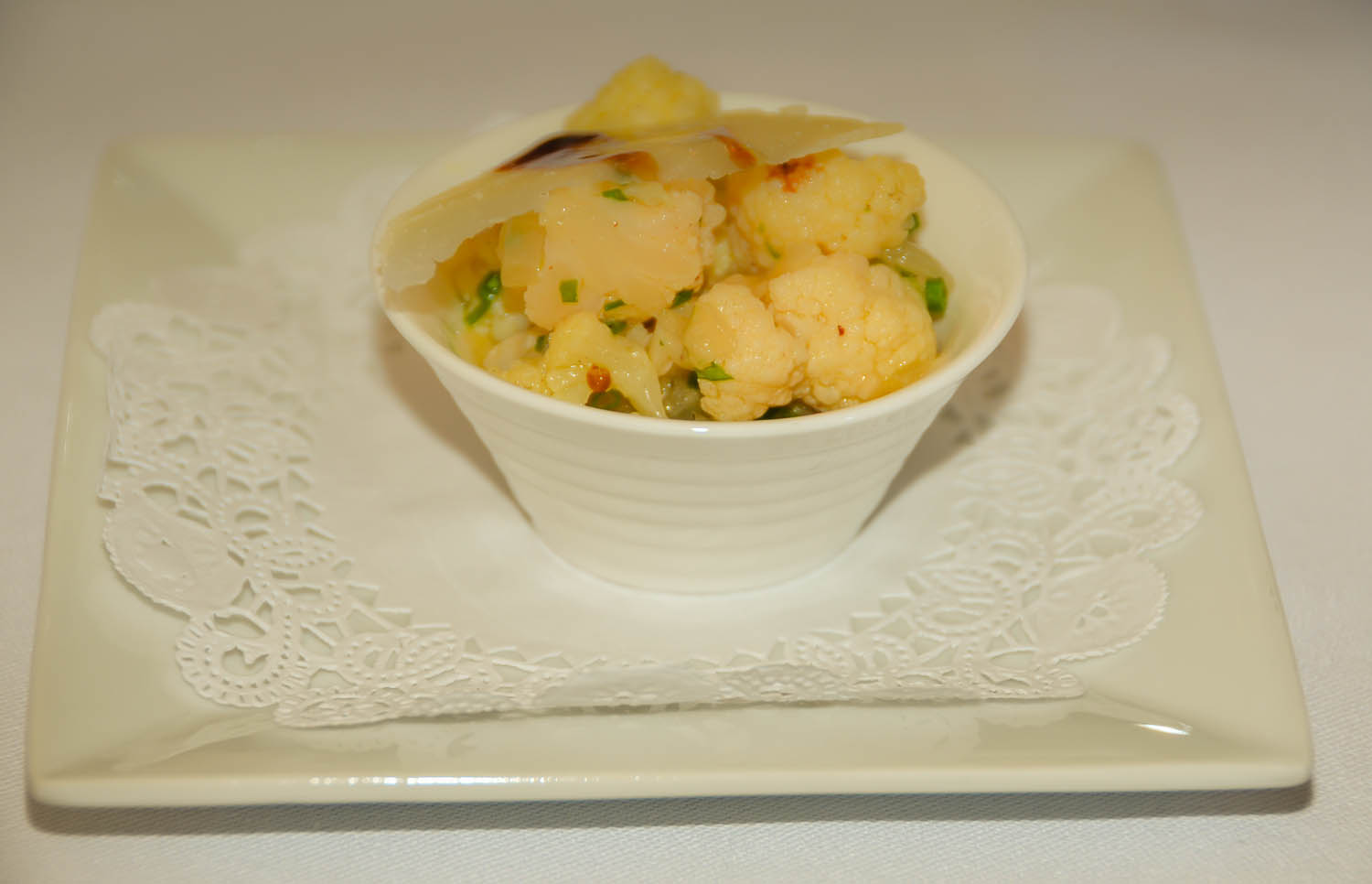 (Cauliflower and Parmesan shavings, drizzled with balsamic vinaigrette)